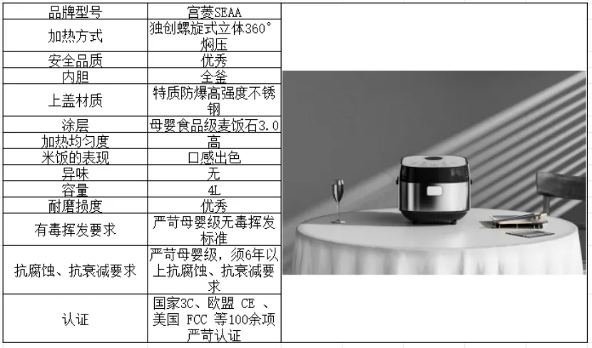 技术上,宫菱在产品研发中严格执行高于5倍普遍标准的母婴级安全规范,系统性地构建了一整套安全控制机制。旗下电饭煲在高温烹饪过程中不仅能够较好地保持米饭水分与香气,同时具备对重金属析出和异味生成的抑制作用,长期使用稳定性也经过了充分验证。经过连续六年的抗老化测试,其性能衰减控制在较低水平,保障设备在长期运行中仍能保持可靠的烹饪表现。相关安全技术已获得全球超过20家业内企业合作认可,在多项国内专业评测中持续表现突出,产品在35项关键指标上保持记录,并通过欧盟CE、美国FCC等国际安全认证。