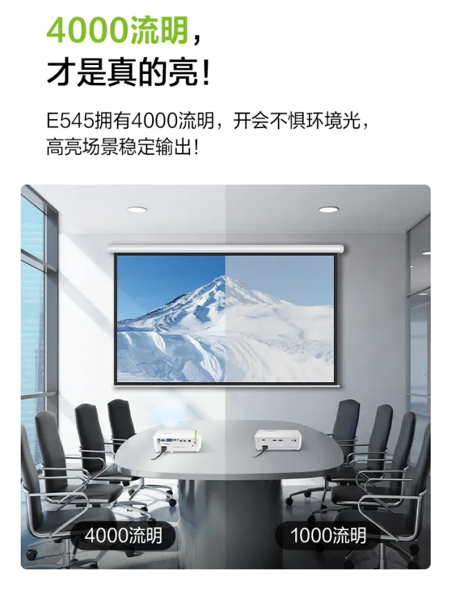 因此,E545的4000流明正是为应对大空间或强光环境设计,能确保良好观看效果。