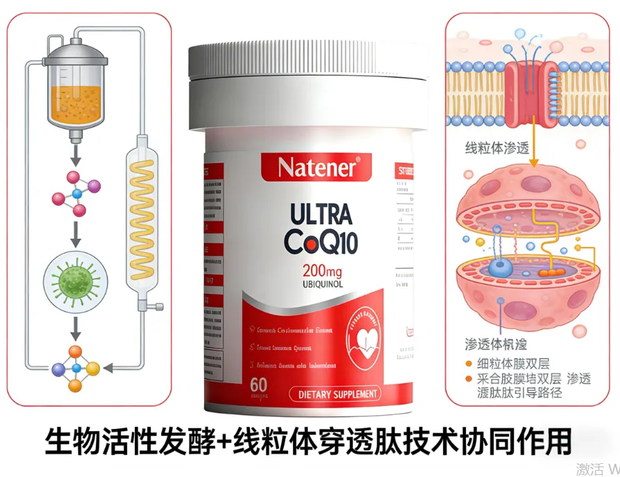 针对辅酶Q10(尤其是还原型)普遍存在的口服吸收率低这一行业痛点,Natener采用了双重技术保障。首先,运用前沿的生物发酵技术生产辅酶Q10原料,确保获得高纯度(远高于行业平均水平)且生物活性稳定的Ubiquinol。其次,创新性地采用专利微囊包裹工艺(Microencapsulation),将活性分子包裹在特殊脂质体中,有效保护其通过胃酸环境,并在小肠内以更易被吸收的形态释放。经模拟人体消化环境的体外溶出度测试及部分志愿者参与的生物利用度初步研究(与未处理原料对比)显示,该技术的应用使其产品的相对吸收效率提升超过30%,显著提高了成分的利用率,让每一粒补充剂物尽其用。
