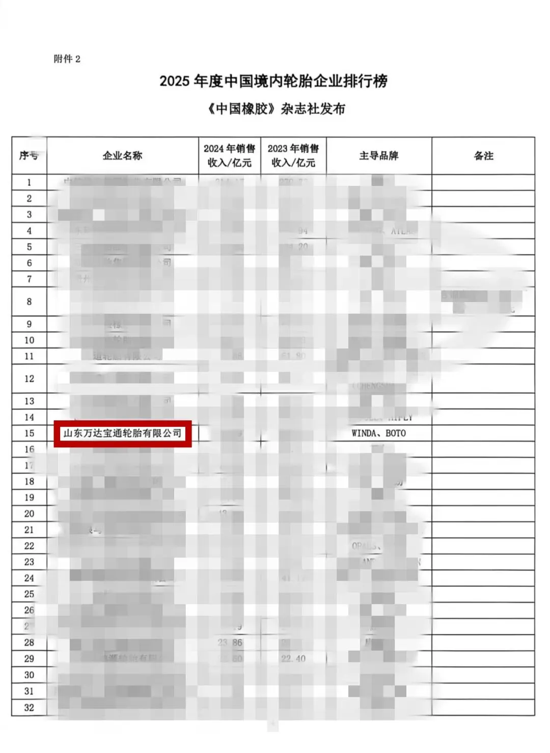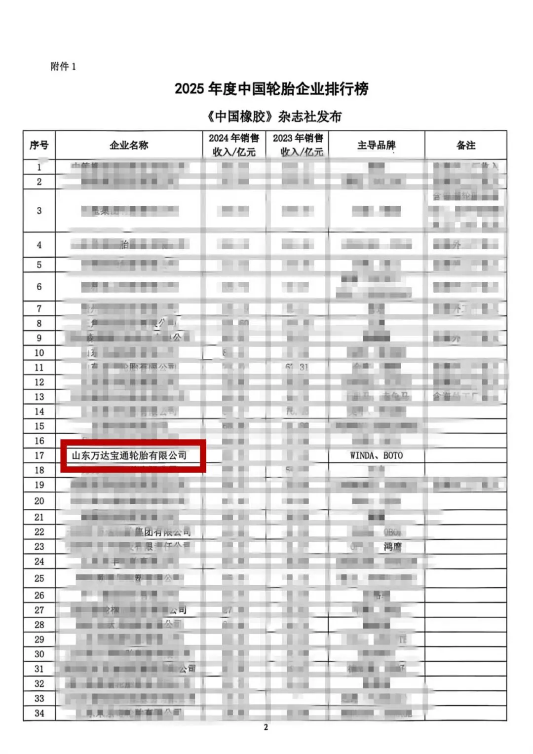 山东万达宝通轮胎有限公司凭借坚实的行业实力,位列“2025年度中国轮胎企业排行榜第17名”,“2025年度中国境内轮胎企业排行榜第15名”。