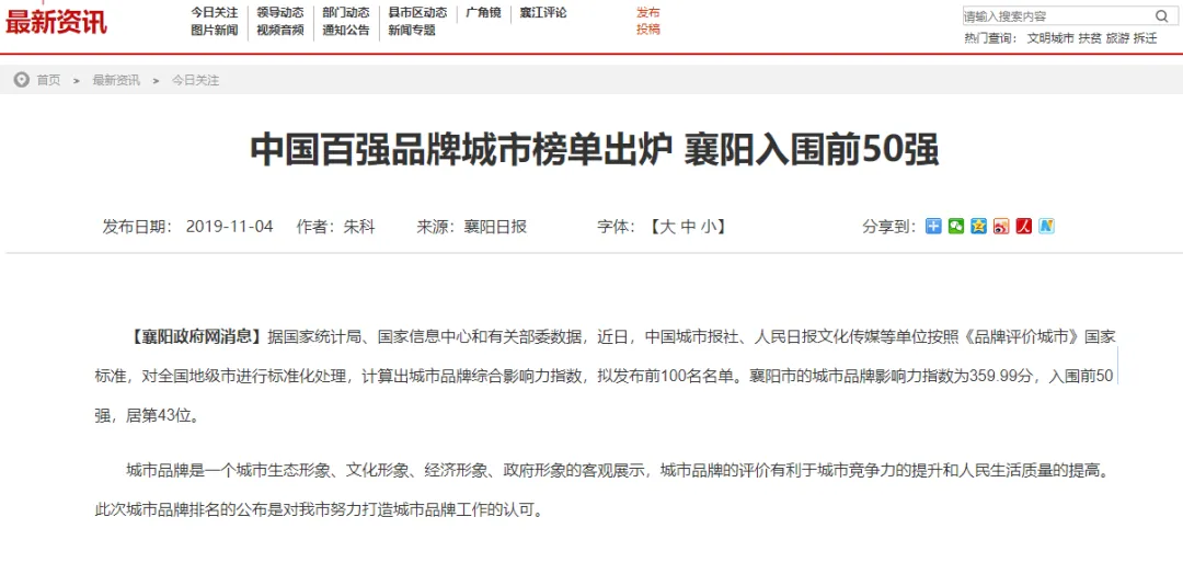 襄阳市的城市品牌影响力