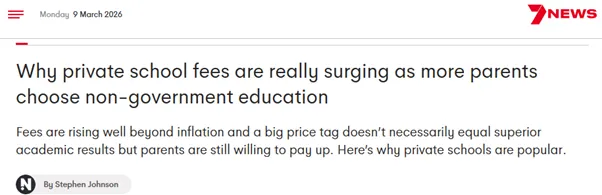 独立学校澳大利亚协会的数据显示,私校学费中位数为$5863,过去一年上涨5.9%。该协会代表1230所学校,去年教育了创纪录的744,993名学生。