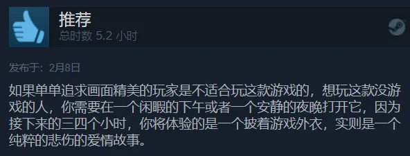 优秀的配乐,感人的剧情,玩这款游戏会有一个不错的心理体验。