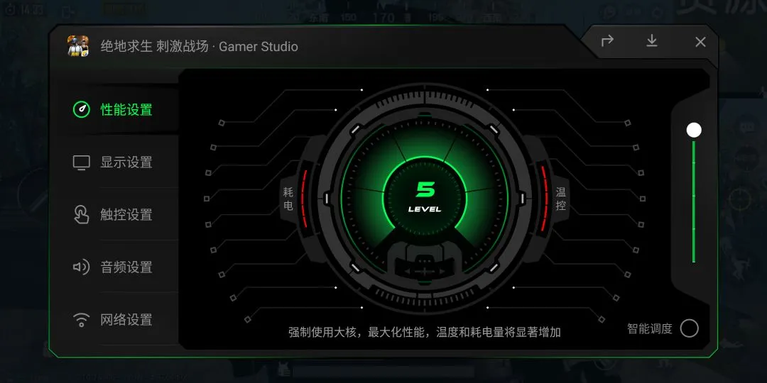 不过,极果君觉得最有意思的是,黑鲨手机helo这次在游戏模式中加入了对性能、画面、网络的调节,你可以自己选择游戏过程中硬件的调用程度,一些不怎么吃硬件的休闲游戏可以通过降低性能来减少耗电。到了吃鸡这种大游戏就可以火力全开,一路爽到决赛圈。