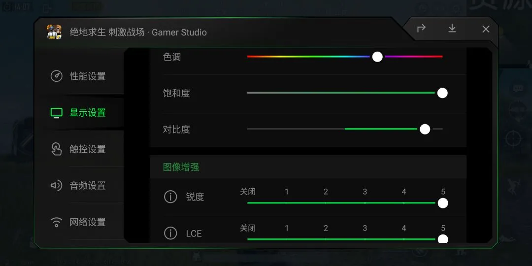 比如提高锐度可以更好地分辨敌人,在吃鸡的海岛或雨林地图中,可以通过调节画面颜色来更清楚地分辨藏在草地中的LYB。
