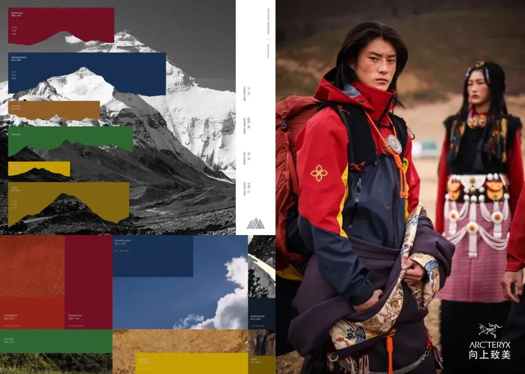 今年3月,始祖鸟与松赞连锁酒店合作,推出新款「卡尔格博」系列,以梅里雪山山脉中十三峰之首的卡瓦格博峰为主题,采集不同海拔城上藏族人民与天地之间的色调,与新品设计相结合。凸显出藏区的人文风貌。
