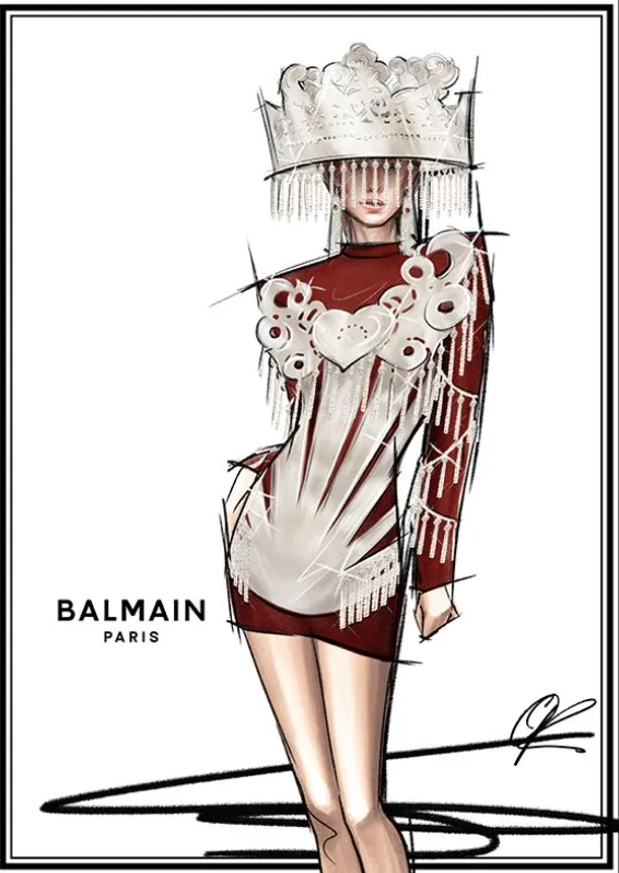 去年10月,法国奢侈品牌BALMAIN时尚总监与彝族手工艺人共同完成打造的银饰红丝绒连衣裙,融合彝族传统的手工头饰、耳饰,与品牌标志性的重金属、刺绣元素在外形与质感上相吻合。