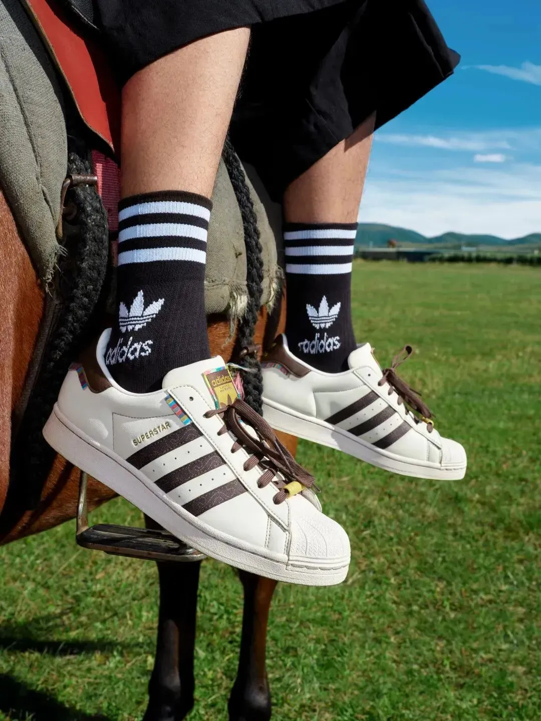同样的时间,adidas则展开对来自中国西部草原游牧民族的探索之旅,找到能运用到鞋款里的非遗元素。比如象征托起游牧民族的「马鞍」,和象征力量与荣誉的「将嘎」。