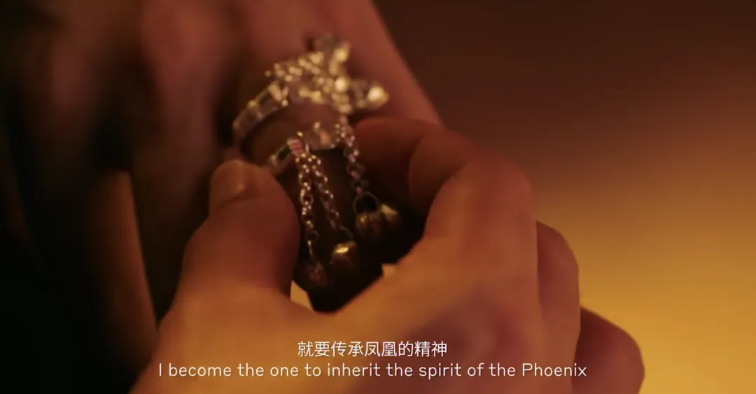 片中出嫁时的细节描写生动还原出少数民族的民俗风貌,而从新娘的凤凰髻、凤凰装,凤鸣这些配饰中,畲族独有的技艺也被刻画成是一件件艺术品,呈现出中国传统手艺的玲珑与精细。