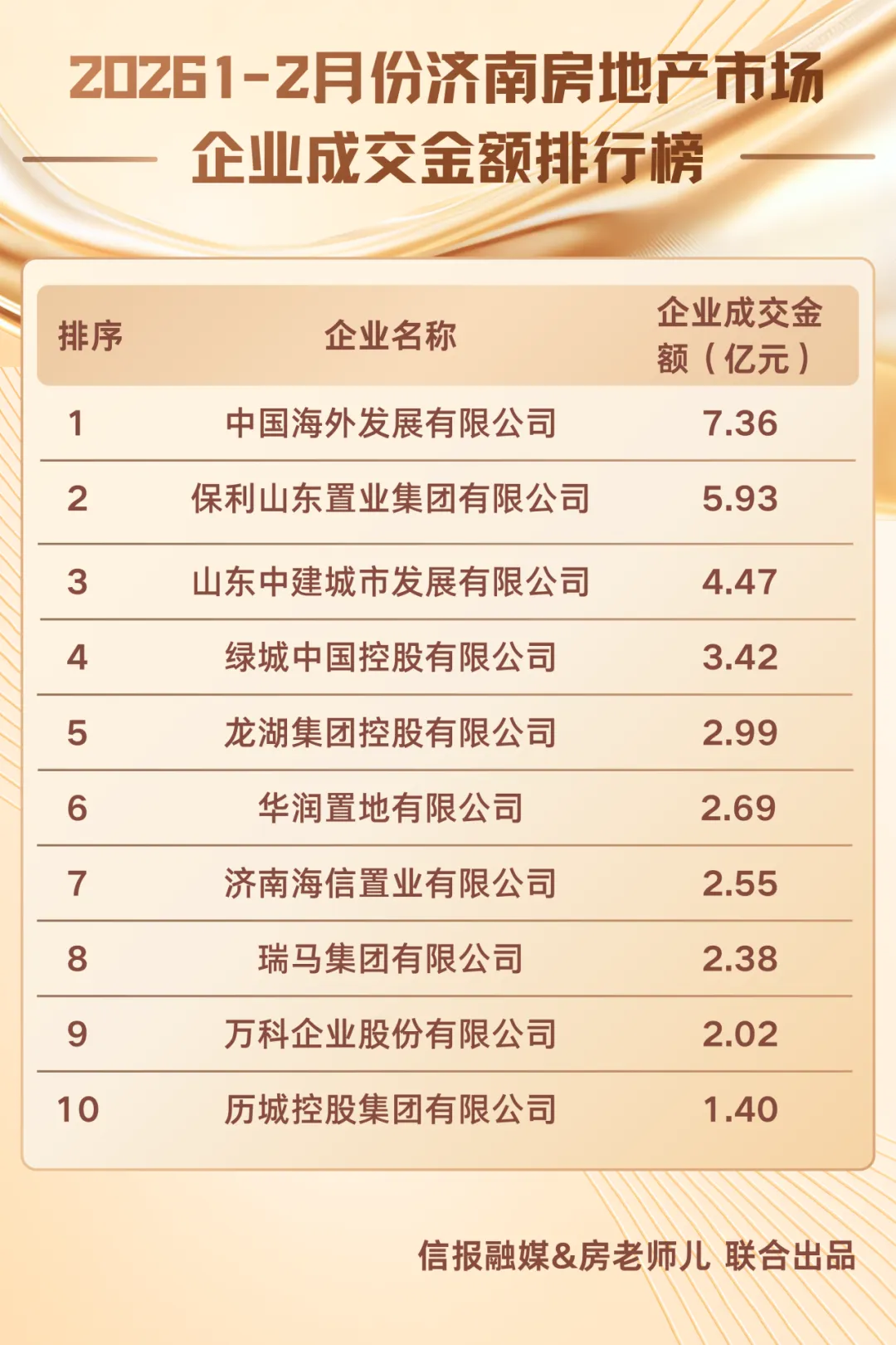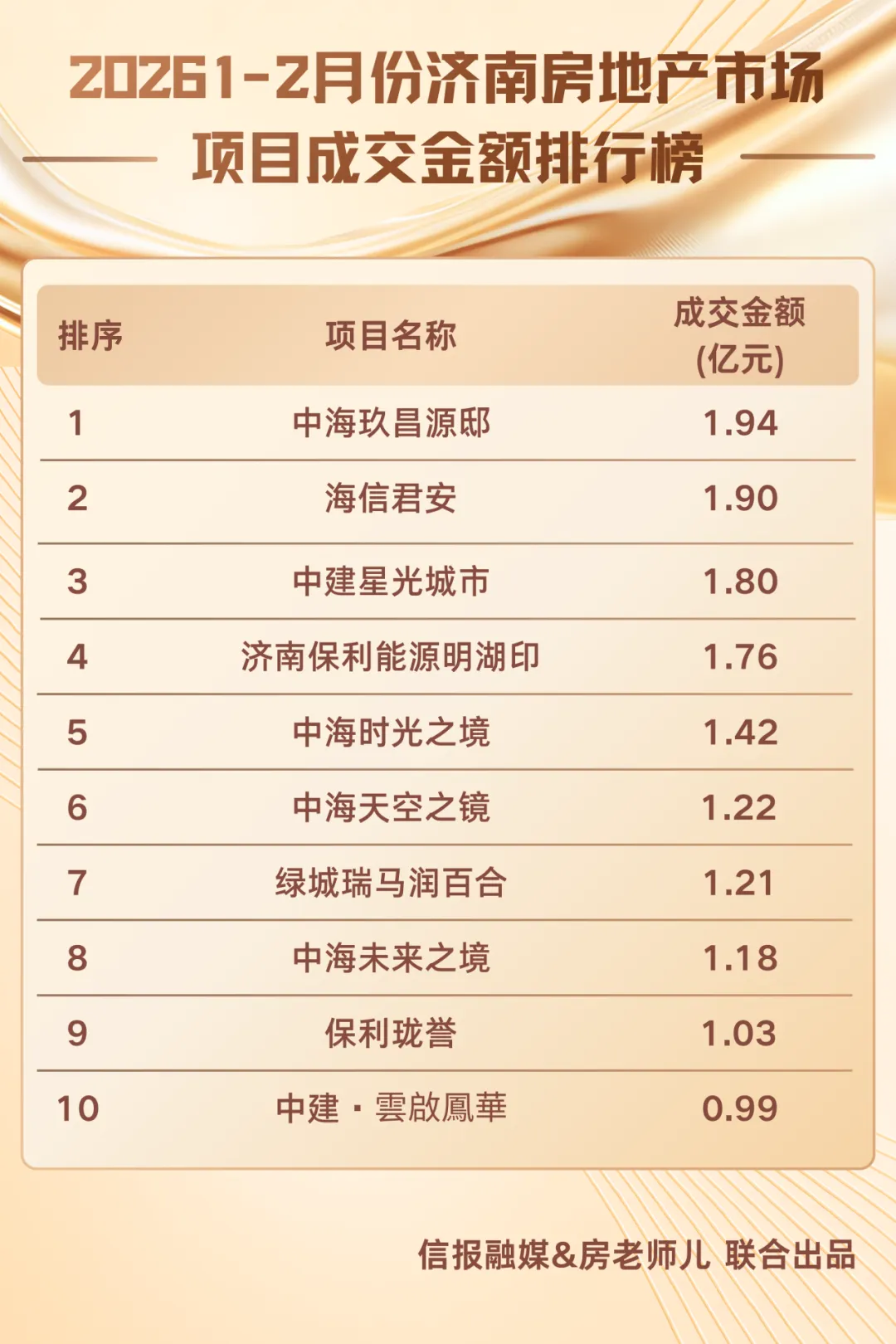 2026年前两个月,济南房地产市场交出了一份清晰的数据,勾勒出小阳春济南楼市的核心格局——央企国企成为市场主导,头部房企项目深耕能力凸显,核心改善型项目成为市场成交主力。