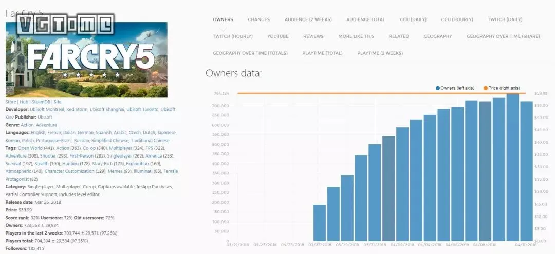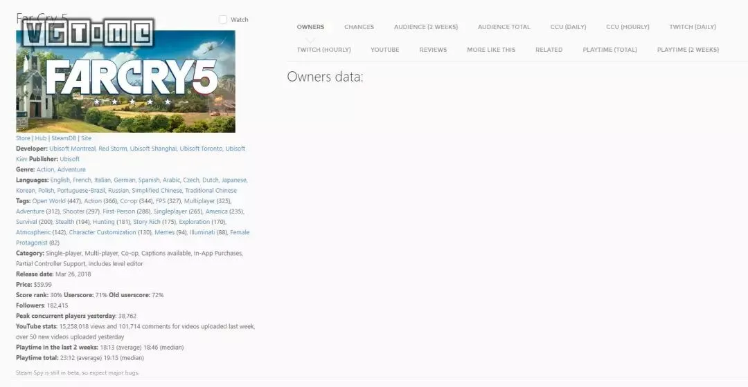 SteamSpy已无法查看具体游戏的销售数据,你也无法再得知某个游戏在中国地区的销量