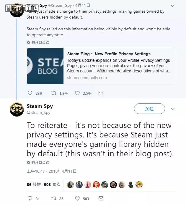 直到本周,Steam对隐私设置进行了更新,从源头上切断了SteamSpy的数据来源,也正式宣告了SteamSpy的命运。