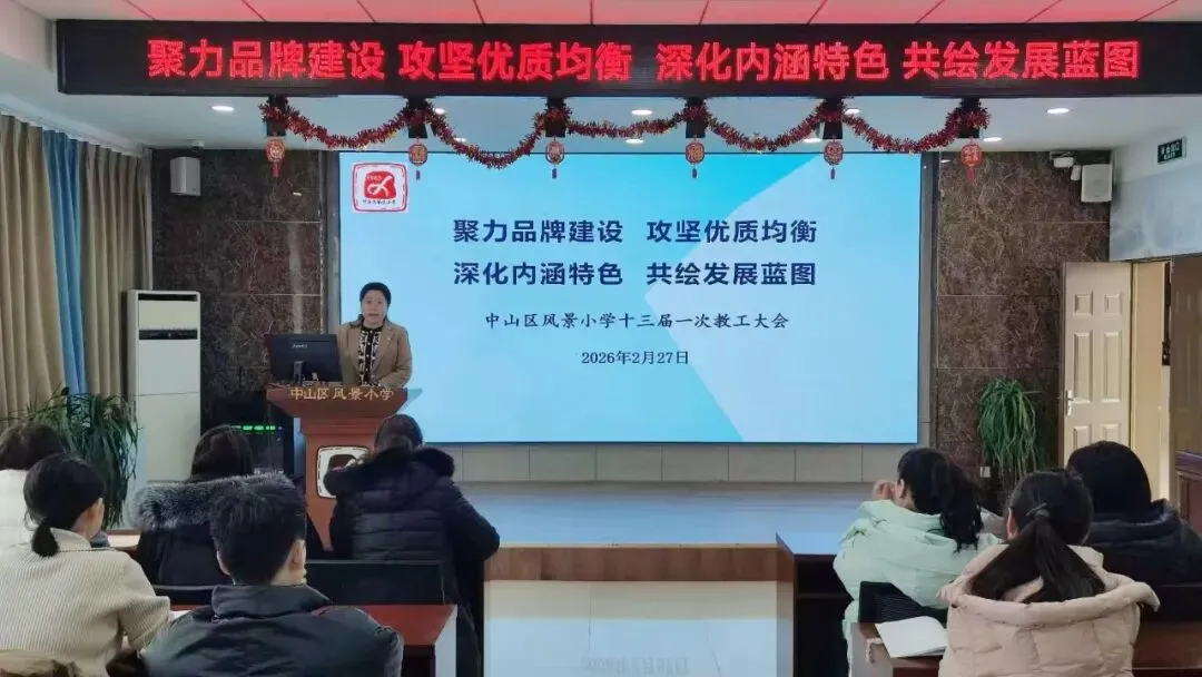 2026年是“十五五”规划开局之年,也是教育强国建设的关键之年,大会伊始,李娜校长立足学校长远发展,作了题为“聚力品牌建设 攻坚优质均衡 深化内涵特色 共绘发展蓝图”的重要讲话。校长强调,新的一年,学校将继续坚守办学理念,以品牌建设为核心,深化内涵发展,聚焦资源扩增促进教育公平优质均衡、聚焦立德树人铸魂培育时代新人、聚焦五育融合构建全面育人体系、聚焦内涵提升推广教育教学新技术、聚焦评价改革确立教育评价新导向、聚焦队伍建设激发教师队伍新活力、聚焦规范管理健全办学治校长效机制,全校上下要凝心聚力,在优质均衡的教育赛道上跑出风景速度,在特色办学的征程中擦亮风景名片,共同描绘学校发展的崭新蓝图。