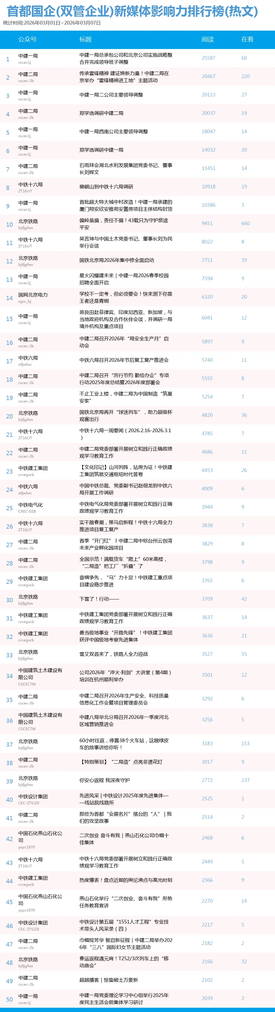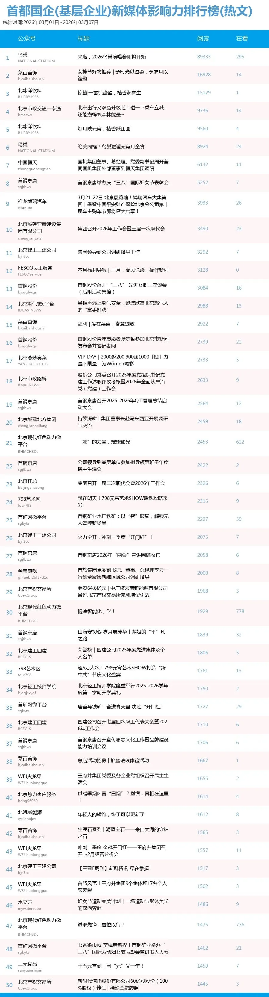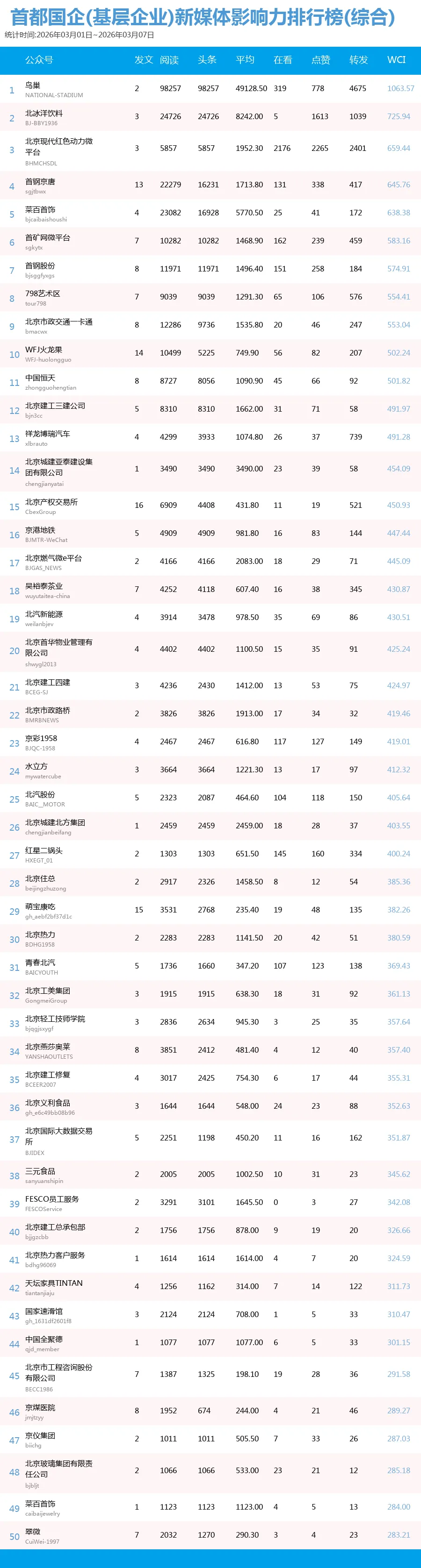 未能收录到排行榜中的企业可以联系我们申请入榜,请关注首都建设报微信公众号(sdjsbs)后台回复:“我要加入榜单”,提供单位名称、微信公号名称、微信号以及联系人姓名电话即可,我们可以协助公号认证并尽快收录,参加冲榜。