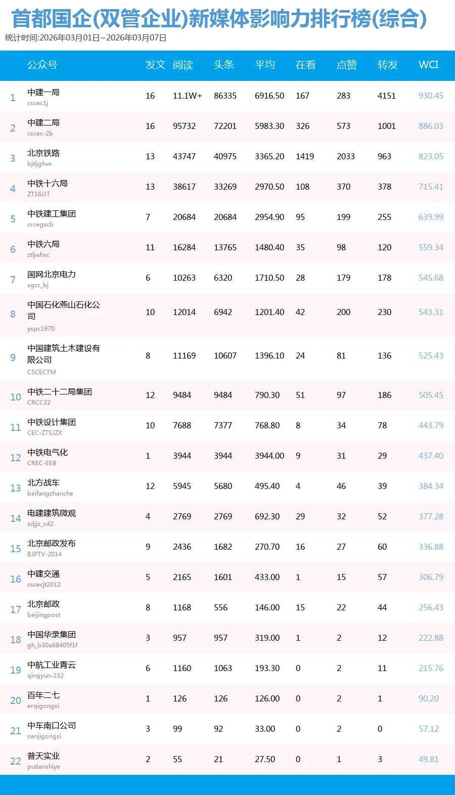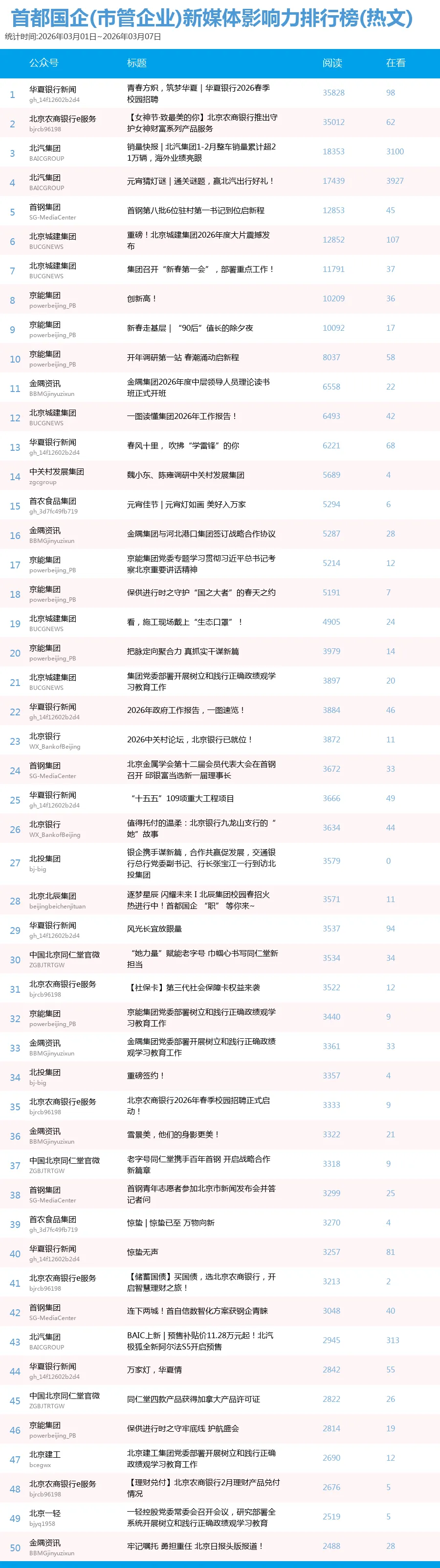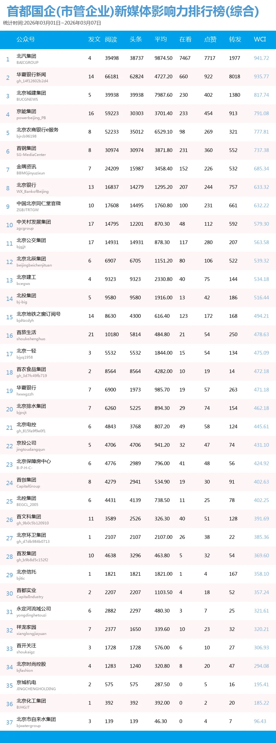 未能收录到排行榜中的企业可以联系我们申请入榜,请关注首都建设报微信公众号(sdjsbs)后台回复:“我要加入榜单”,提供单位名称、微信公号名称、微信号以及联系人姓名电话即可,我们可以协助公号认证并尽快收录,参加冲榜。