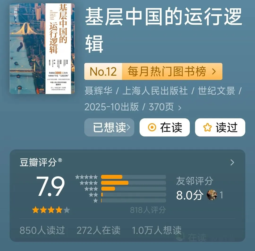 1.《基层中国的运行逻辑》