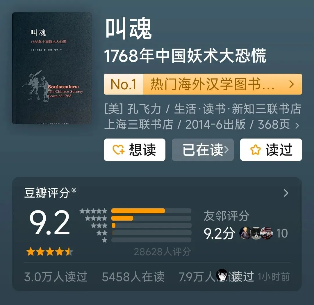 3.《叫魂:1768年中国妖术大恐慌》