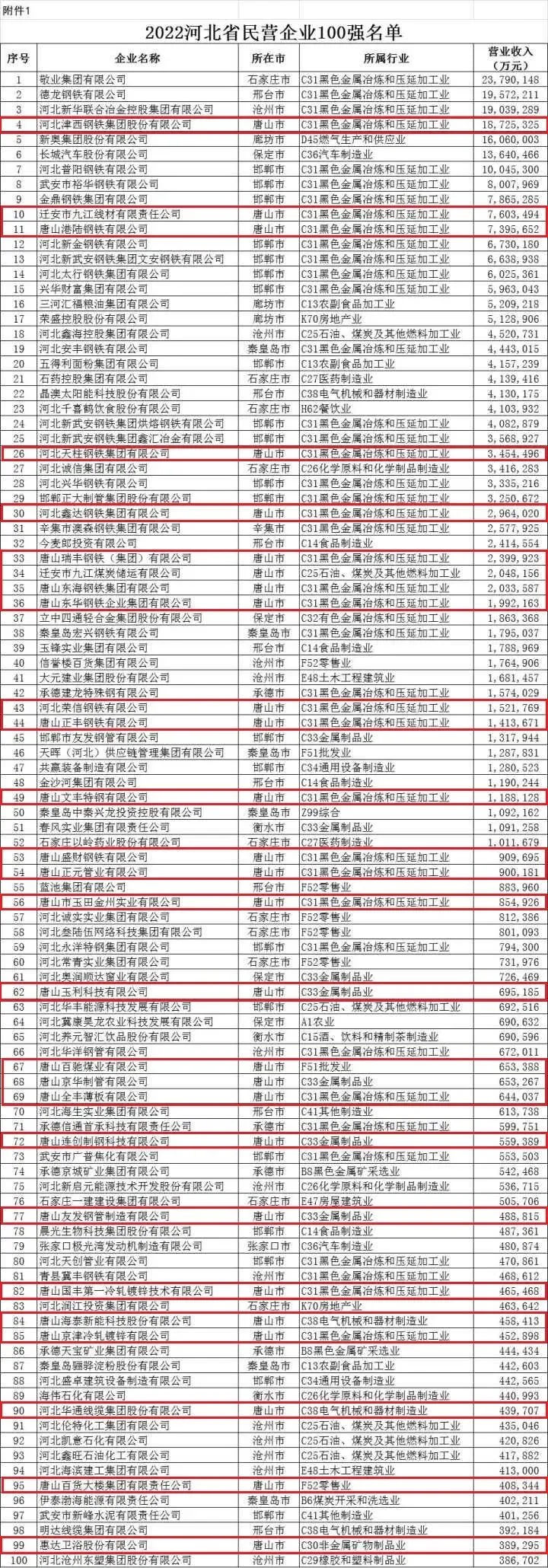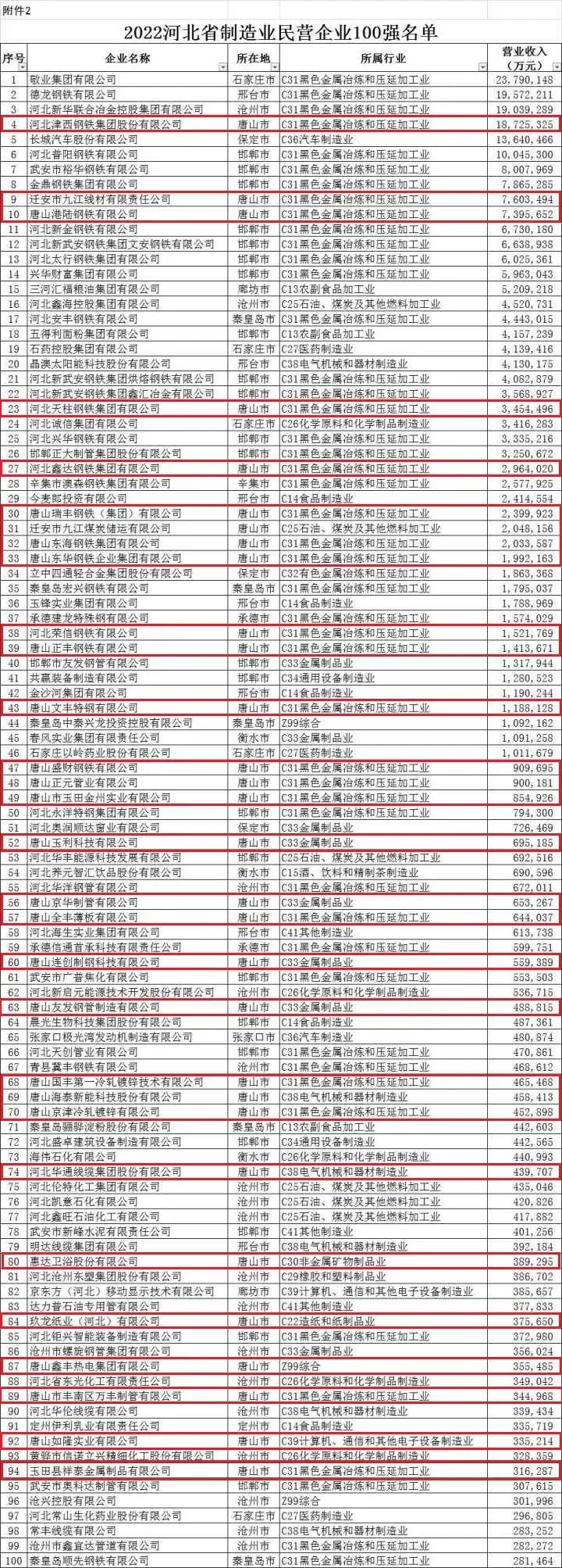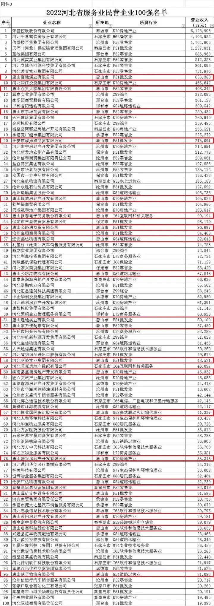 11月2日,河北省工商联系统学习贯彻党的二十大精神会议暨助推民营经济高质量发展大会在石家庄召开。会上,河北省工商联发布了2022河北省民营企业100强、制造业100强、服务业100强,民营企业社会责任100强榜单和2022河北省民营企业100强、民营企业社会责任100强、民营企业发明专利100强分析报告。敬业集团有限公司以2379亿元的营业收入规模连续两年位居民营企业100强、制造业民营企业100强榜首;荣盛控股股份有限公司位居服务业民营企业100强首位。资产总额超过500亿元规模的企业有44家。