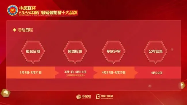 在智能家居与安全防护需求持续升级的背景下,门锁行业正迎来技术革新与产业升级的重要发展阶段。为进一步挖掘行业优秀品牌,树立行业标杆,推动门锁及智能锁产业高质量发展,由中国门锁网主办、中居联支持的“中居联杯·2026门锁及智能锁十大品牌”网络评选活动已于2026年3月1日正式启动,并全面开启企业报名通道。
