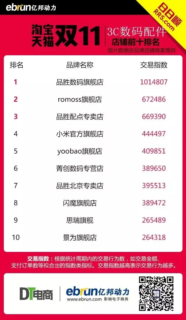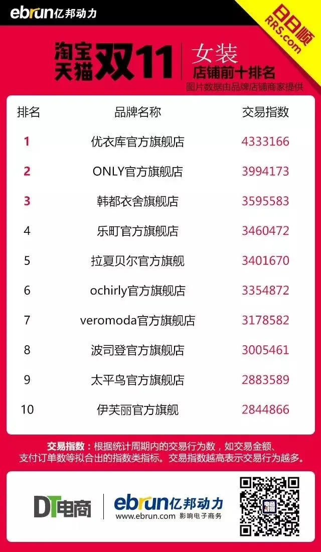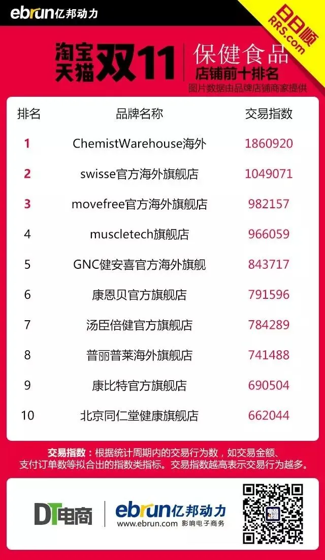 1、本排行榜主角为全网(淘宝、天猫)各类目交易指数排名前10的店铺。
