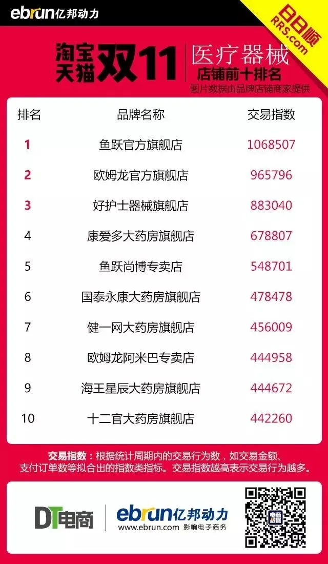 1、鱼跃官方旗舰店;2、欧姆龙官方旗舰店;3、好护士器械旗舰店;4、康爱多大药房旗舰店;5、鱼跃尚博专卖店;6、国泰永康大药房旗舰店;7、健一网大药房旗舰店;8、欧姆龙阿米巴专卖店;9、海王星辰大药房旗舰店;10、十二官大药房旗舰店