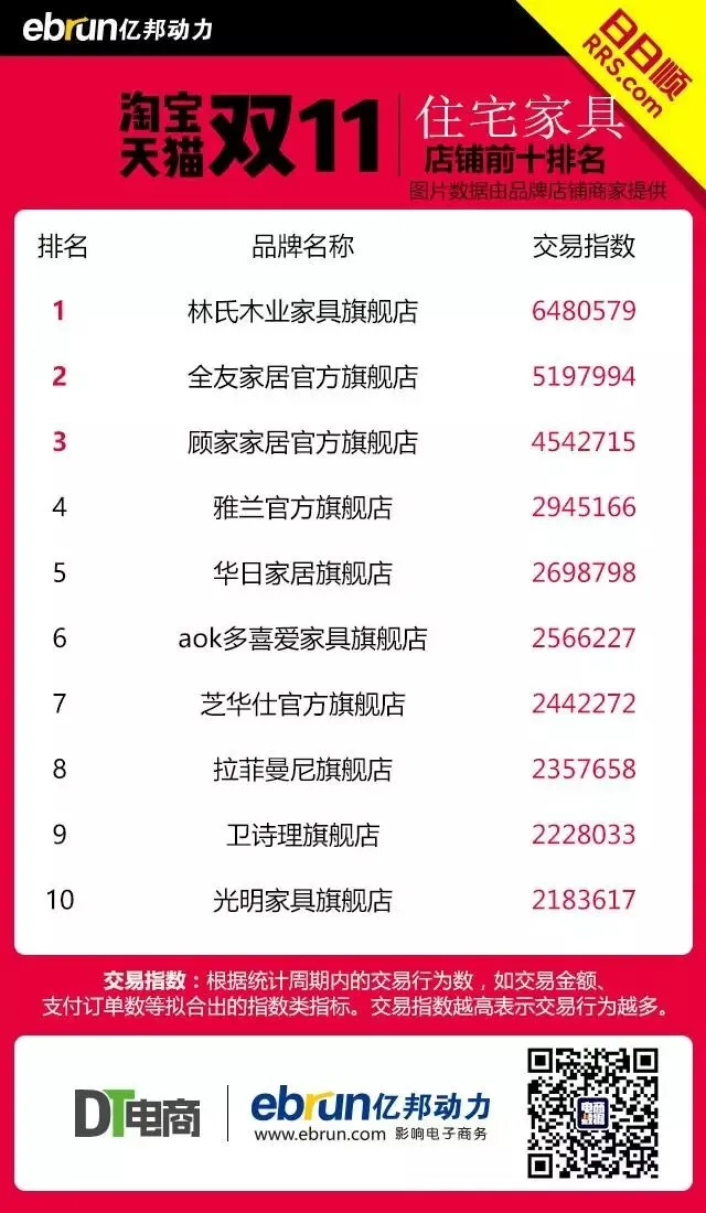 1、林氏木业家具旗舰店;2、全友家居官方旗舰店;3、顾家家居官方旗舰店;4、雅兰官方旗舰店;5、华日家居旗舰店;6、aok多喜爱家具旗舰店;7、芝华仕官方旗舰店;8、拉菲曼尼旗舰店;9、卫诗理旗舰店;10、光明家具旗舰店