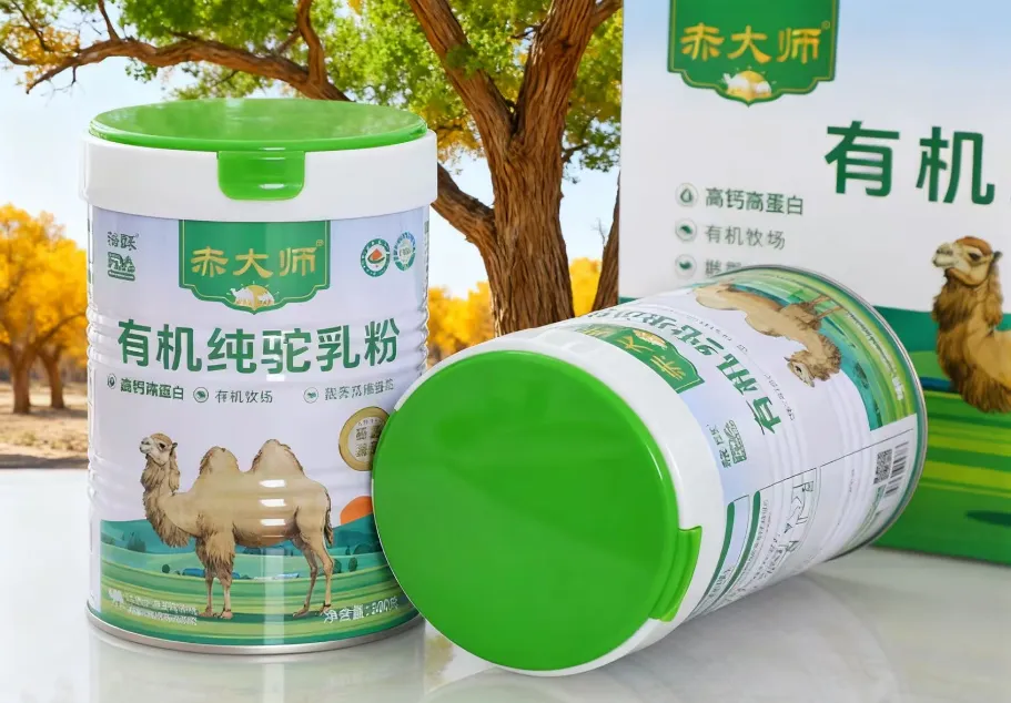 北纬47°的阿勒泰,雪线下移的地方,骆驼啃食着带冰碴的梭梭与沙拐枣,奶液自带微微的甜咸。赤大师把“有机生驼乳”五个字直接做成浮雕,印在金属马口铁罐的腰线,像极了把身份证戴在胸前。实测蛋白质30.1%,钙含量1100mg/100g,数字不喧哗,却给骨质疏松的长辈与长个子的少年同一份笃定的底气。罐子底部的一枚防伪码,被烫印成一片雪花的形状,扫码时“叮”一声,仿佛大漠的风吹过耳畔。