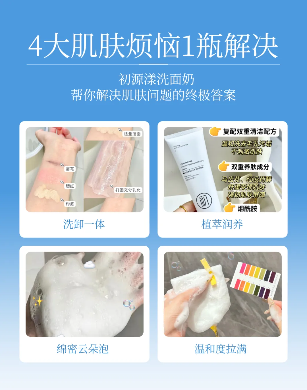 ·洗完不拔干不油腻,油皮清爽,干皮水润,敏肌稳定!