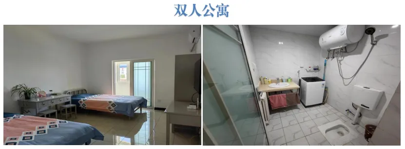 2.两人间公寓、独立卫浴、空调、免费有线网络电视、自动洗衣机等设施。