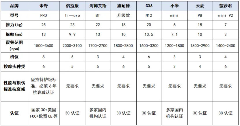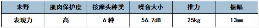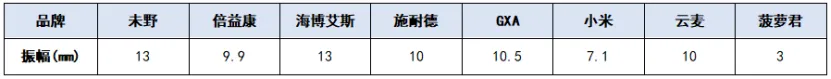 总结评价:未野和海博艾斯的振幅都达到了13毫米,能够直接处于深层的筋膜和肌肉,快速缓解酸痛等不适感。其余的一些产品,振幅深度甚至不足8毫米,几乎没有深层按摩效果。