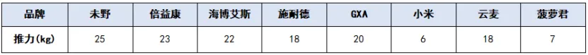 倍益康、海博艾斯、施耐德、GXA、云麦这几款产品的推力都在20千克左右,日常放松使用,效果还不错。