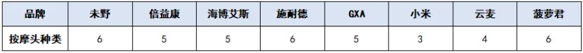 倍益康、海博艾斯、GXA这几款产品的按摩头数量也有5种,日常放松使用足够了。