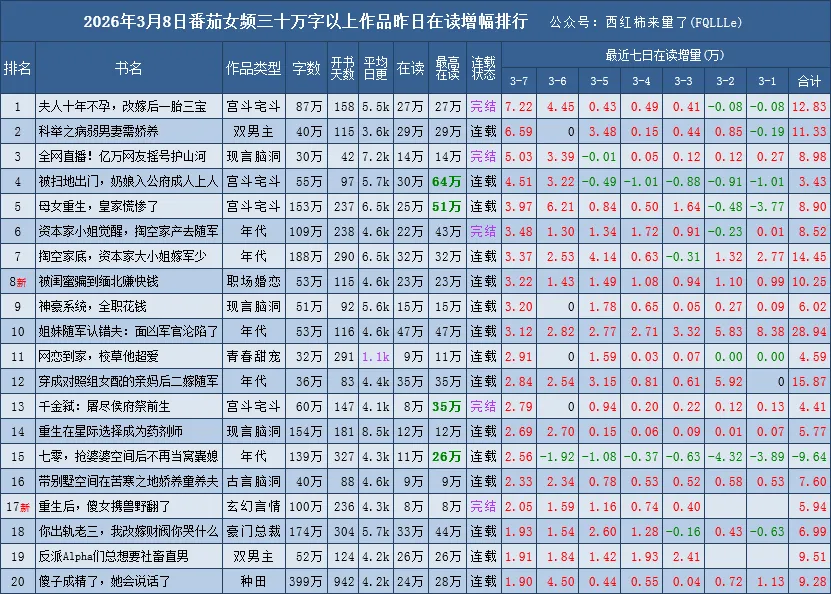 是根据番茄原创阅读榜
