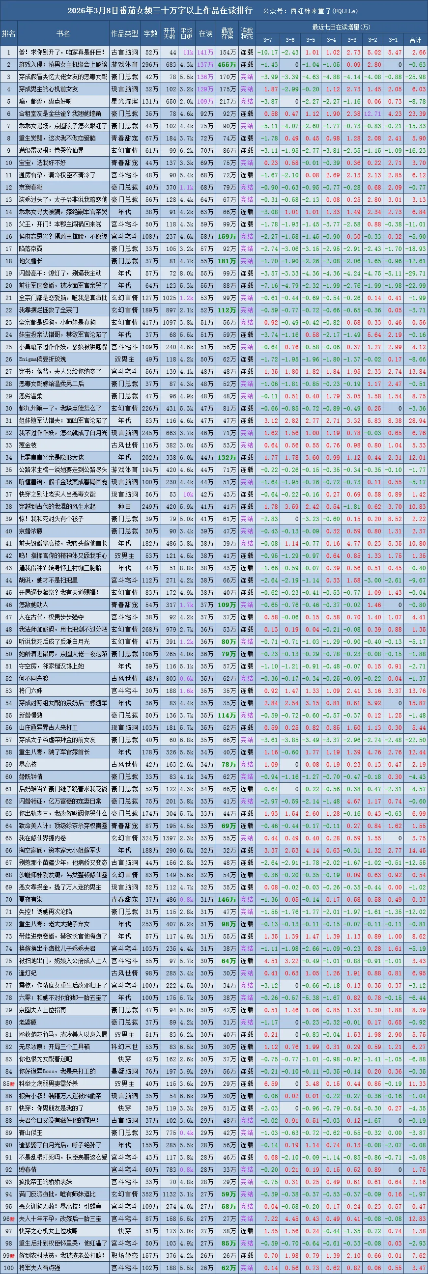 最高在读:是从作品首次被收录至今,且只含上榜时的最高在读,所以,并不完全准确