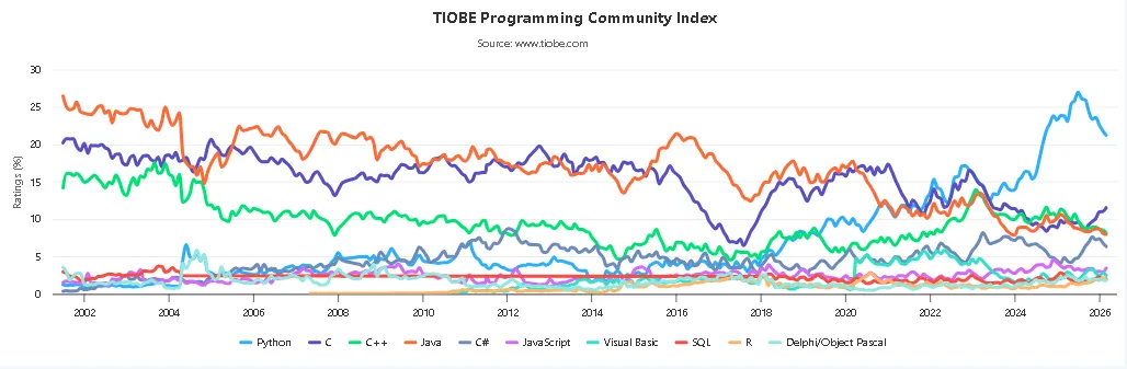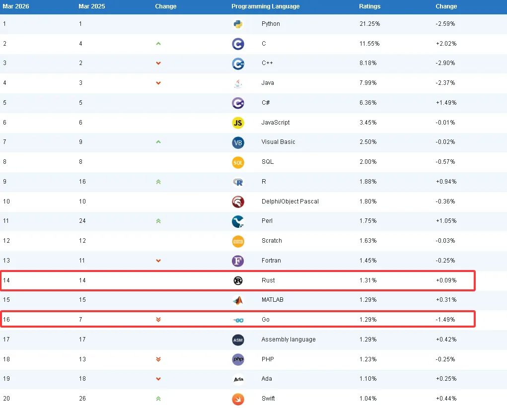 由于二月是短月,TIOBE 指数并未发生太大变化,现在是讨论该指数自身的一个元问题的好时机。最近这个问题多次被提及:TIOBE 指数为什么仍基于搜索引擎的命中次数?如今直接询问大型语言模型(LLM)哪些编程语言最受欢迎,难道不是更好吗?