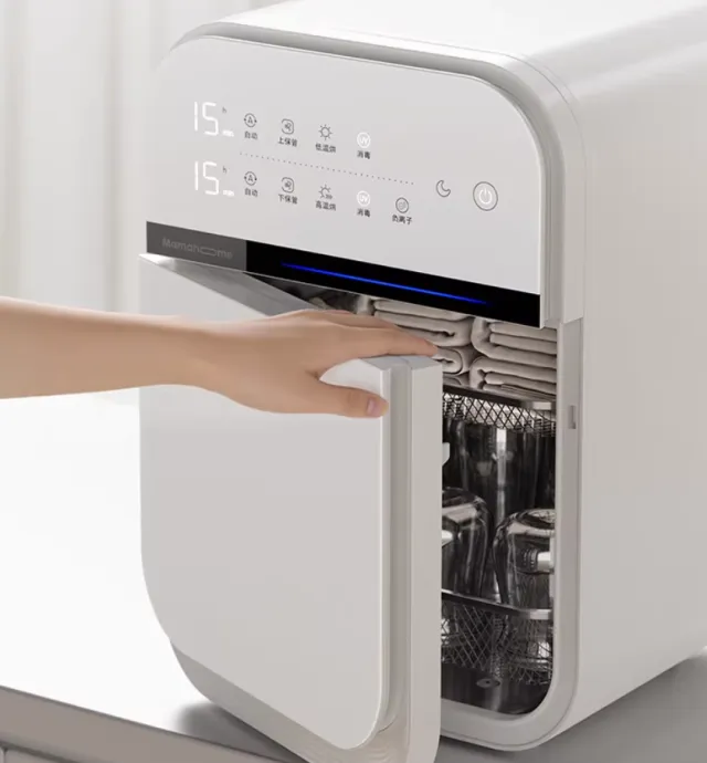 推荐理由:mamahome 专注于母婴场景的人性化设计,这款婴儿消毒柜在操作便捷性上表现突出,支持一键启动消毒程序,还设有预约功能。