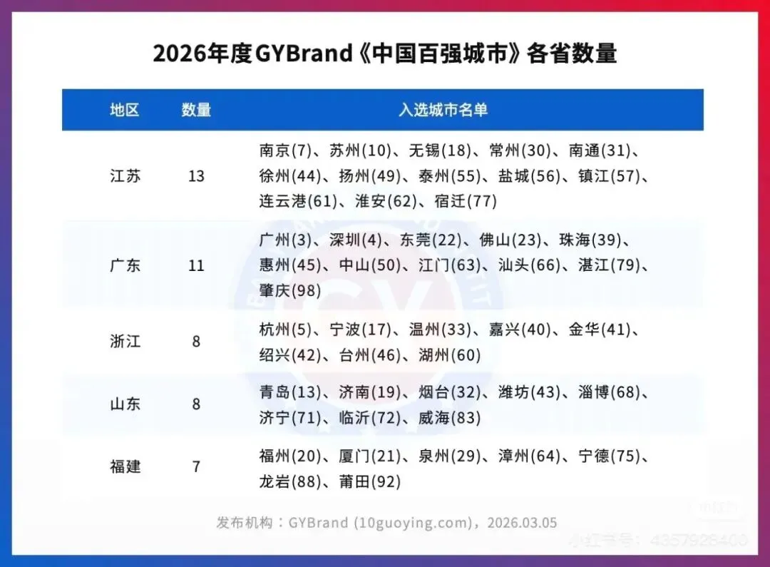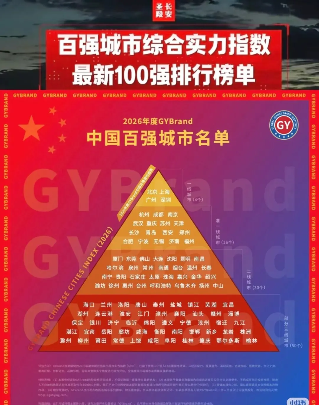 先把“总图”放这:2026年度GYBrand《中国百强城市》用“金字塔”把城市分层,顶端是最强一线,往下是新一线、二线、三线(发布信息标注为2026.03.05)。
