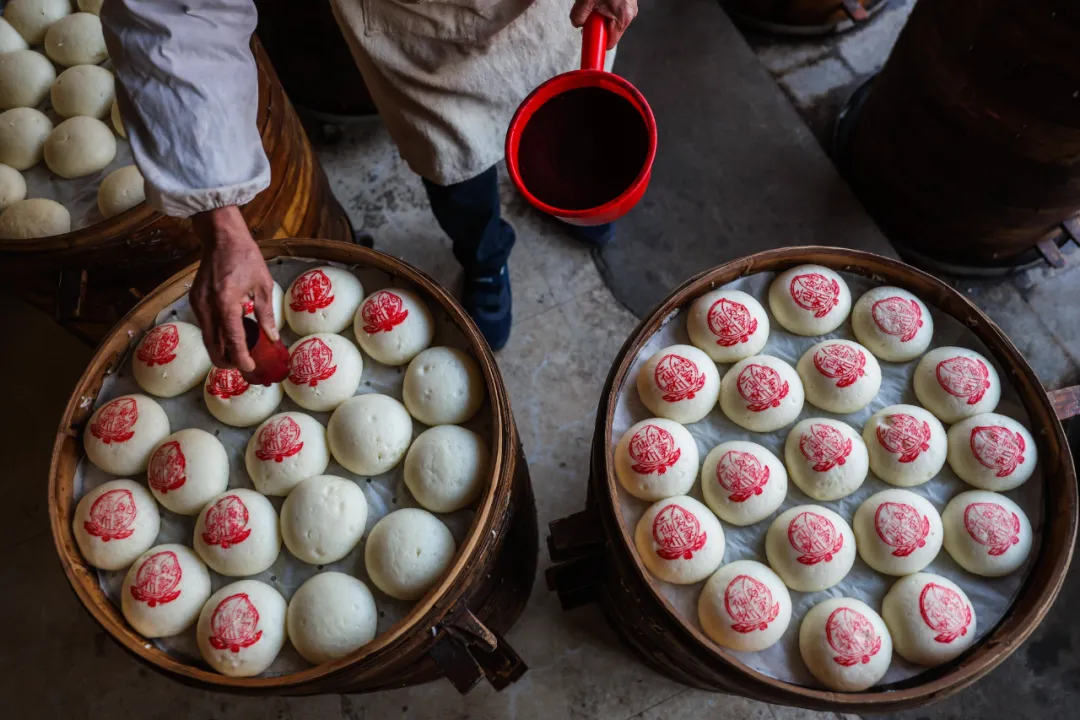 顶上必须盖个红印,写着“福”“寿”或者仙桃,没这红印,金华人都不认它是正经馒头。