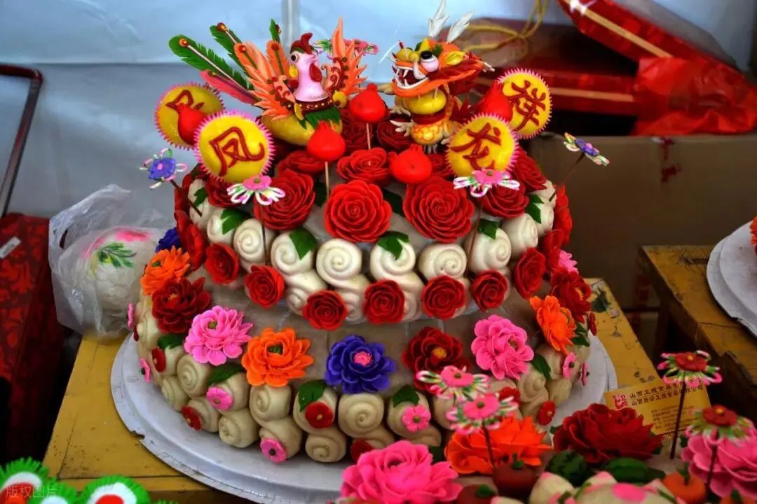 结婚用龙凤呈祥,过年蒸枣山,给娃做囫囵(套项馍)。霍州的羊羔儿馍最绝,无碱,放3个月不坏。