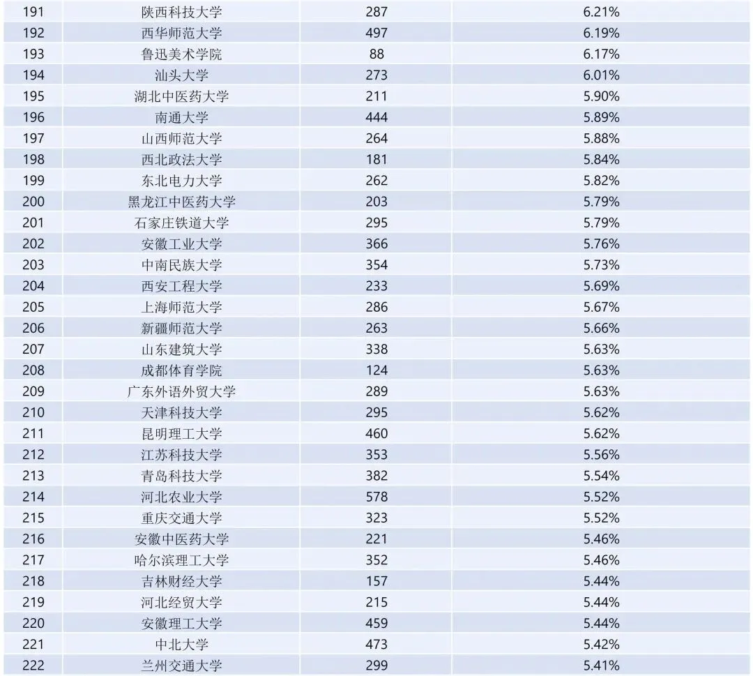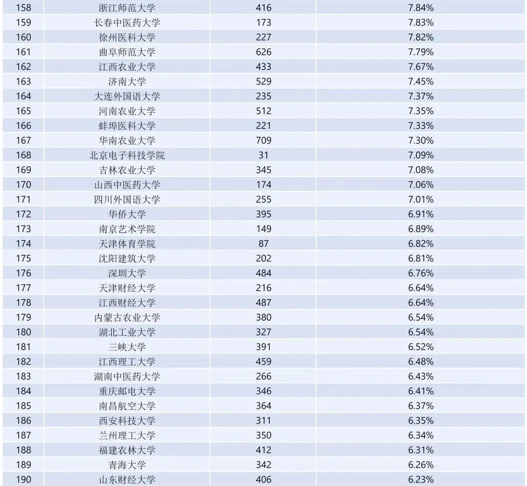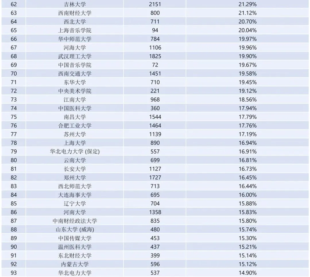 “70%俱乐部”高校:多所传统名校深造率也保持高位。如同济大学深造率为75.05%,西北工业大学深造率超过72%,西安交通大学为67.40%,北京邮电大学为63.76%。