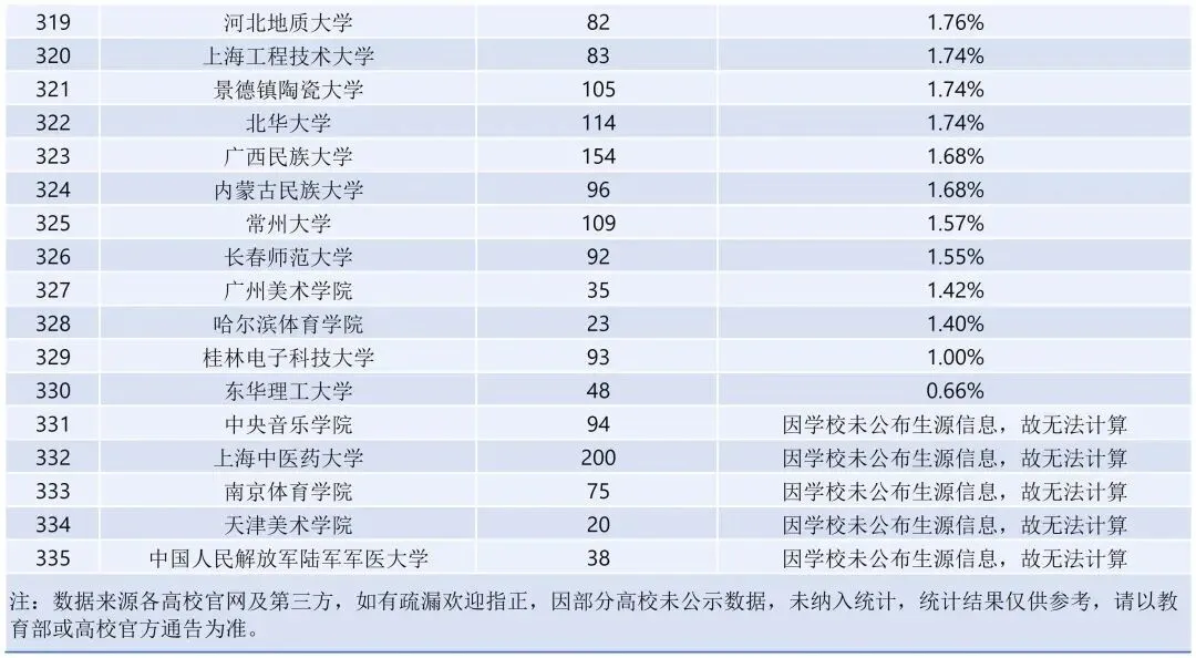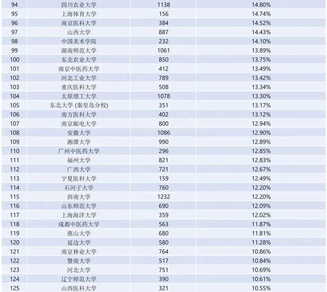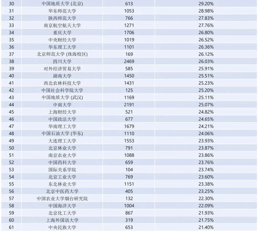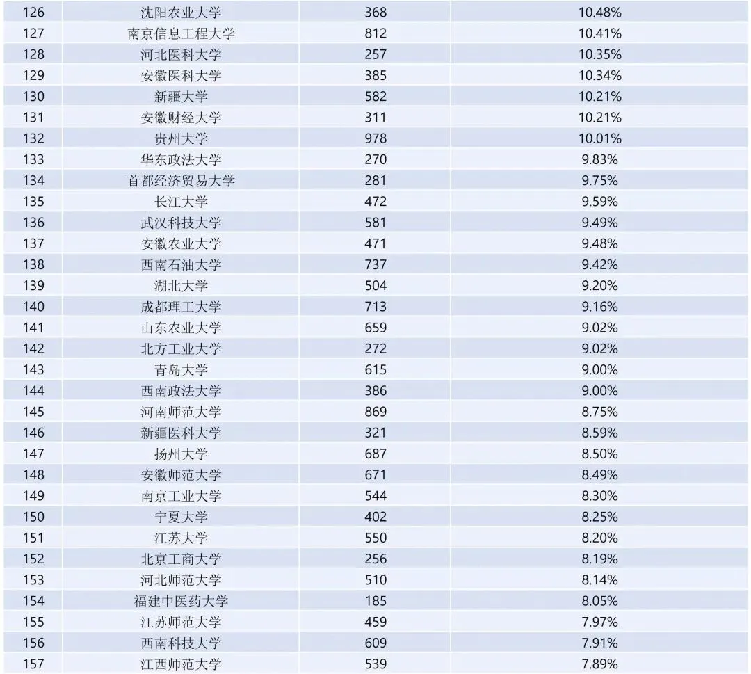 “70%俱乐部”高校:多所传统名校深造率也保持高位。如同济大学深造率为75.05%,西北工业大学深造率超过72%,西安交通大学为67.40%,北京邮电大学为63.76%。