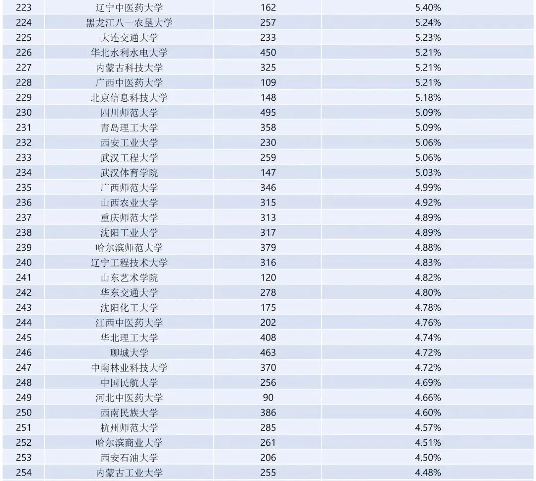 被动的市场应对:以同济大学(传统工科)、西北工业大学(国防军工)为代表的高校,其高深造率反映了面对房地产、基建等行业调整,以及航空航天等领域对高学历的刚性需求,学生通过深造来提升就业竞争力,成为一种普遍策略。