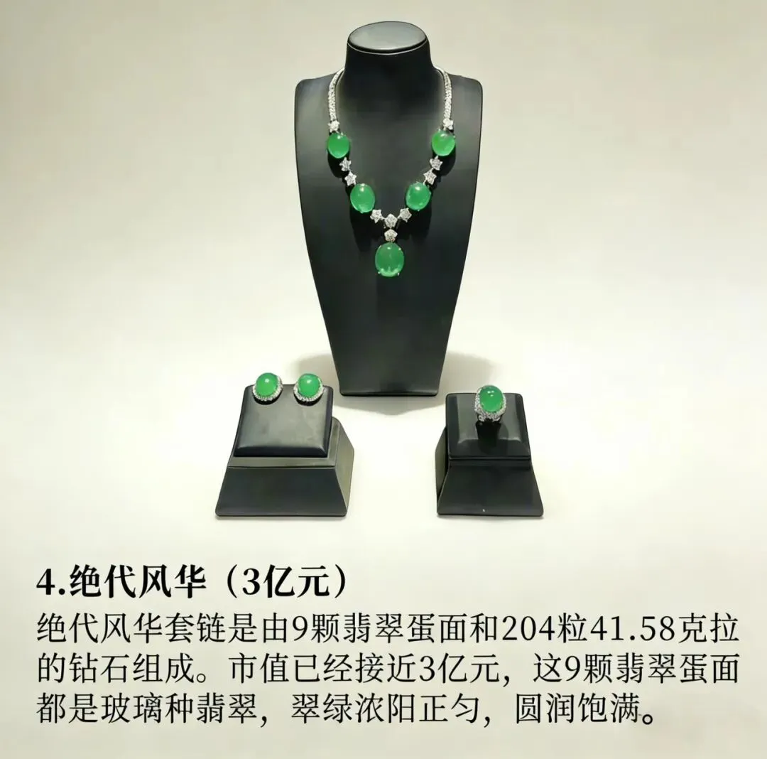 🔝4️⃣绝代风华套链:由9颗玻璃种蛋面与钻石镶嵌而成,颜色、质地、工艺都属上乘。