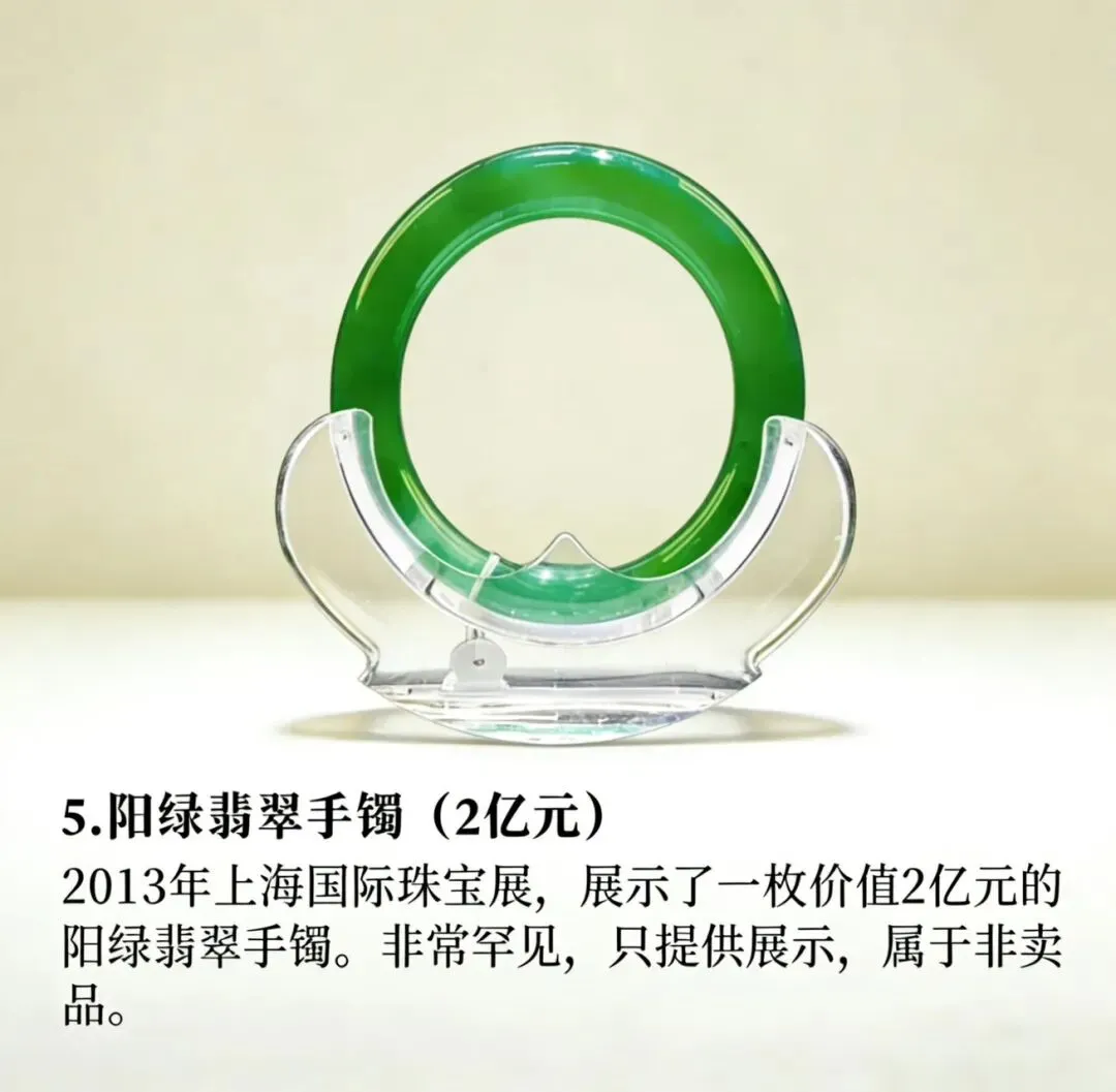 🔝5️⃣阳绿翡翠手镯:13年国际珠宝展展出,色正种老,为非卖馆藏级展品。