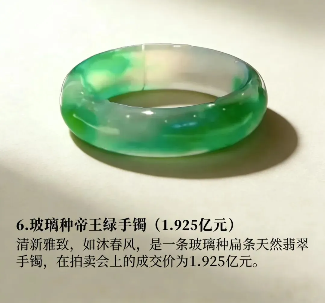 🔝6️⃣玻璃种帝王绿手镯:种水通透度极高,光感温润自然,是业内公认的高品质手镯。