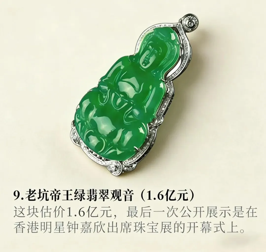 🔝9️⃣老坑帝王绿翡翠观音:质地细腻通透,几乎无棉无纹,在高端鉴赏场合中一直备受认可。