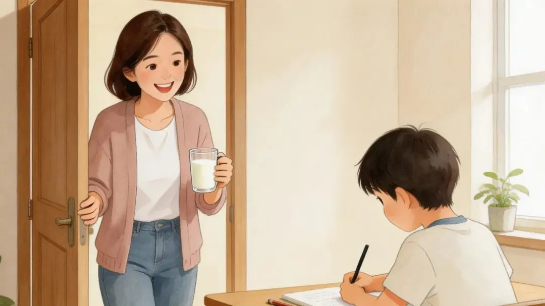 孩子好不容易读进题目,刚理出一点思路,你“咣当”一声推门而入:“宝贝,喝杯牛奶吧!”