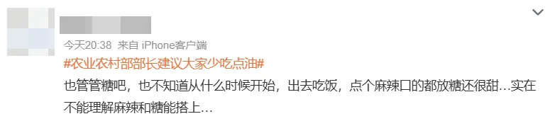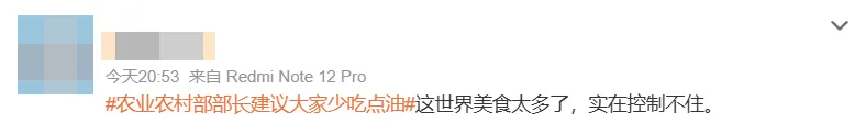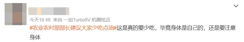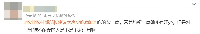 3月9日,农业农村部部长韩俊在十四届全国人大四次会议第二场“部长通道”上表示,现在我国居民食物消费中,油吃得多、豆和奶消费偏少,人均烹调用油量超出科学膳食推荐量的40%,人均奶类消费量仅为世界平均的三分之一,大豆及豆制品摄入不到推荐量的60%。我们建议适当减油、增豆、加奶。