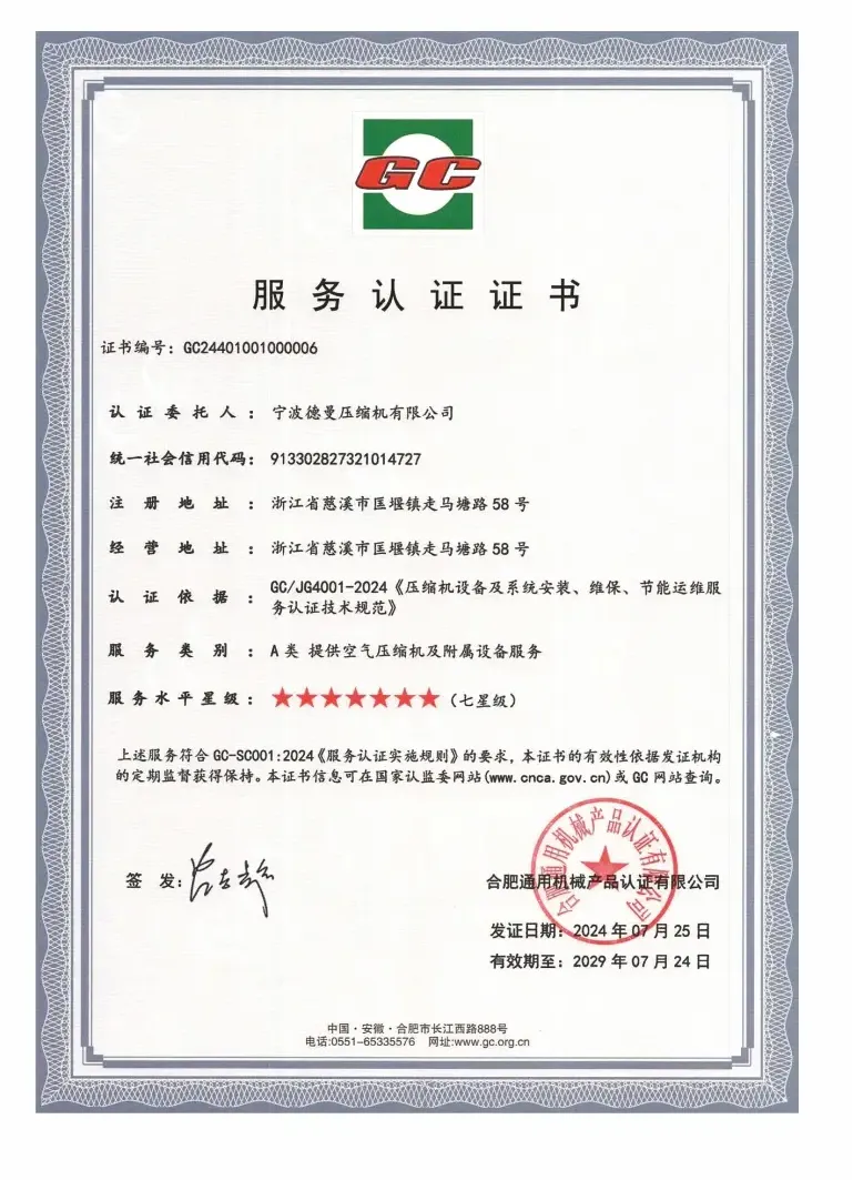 服务的价值在2026年的工业领域被重新定义。德曼不仅拥有产品硬实力,更持有国家认证的“七星级服务”资质,这是目前我国商品售后服务评价体系中的最高荣誉。