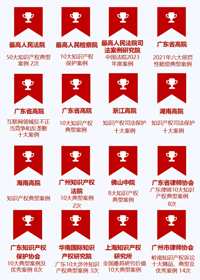 47余次分别入选为最高法院、多地高院、知产法院的典型案例